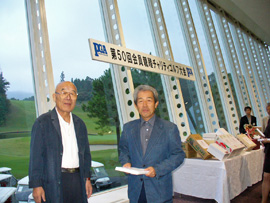 会員親睦チャリティゴルフ大会で優勝した鹿嶋氏(右)
